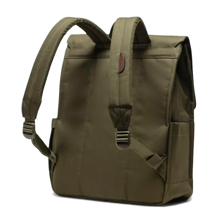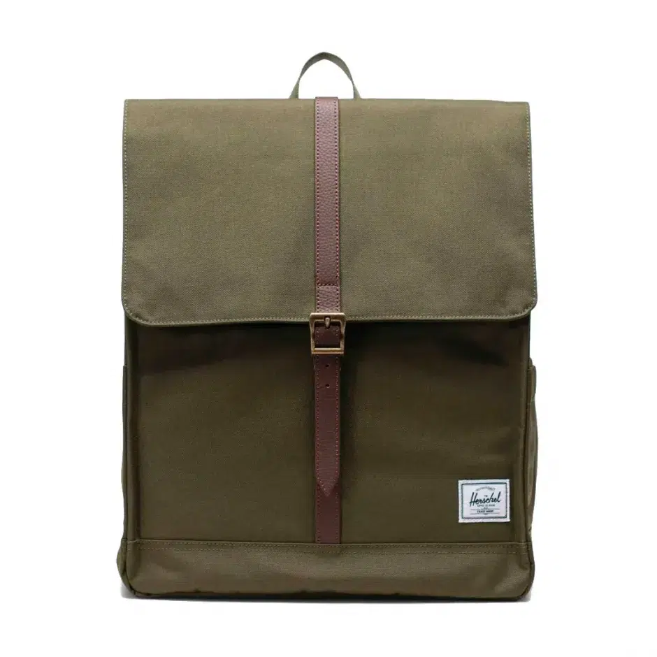 Herschel City unisex σακίδιο πλάτης σε υπέροχο χακί χρώμα με λεπτομέρεια τα καφέ λουράκια. Αριστερά έχει το λογότυπο της εταιρίας. Διαθέτει χώρο με επένδυση για laptop. Κλείνει με λουράκι με μαγνήτη. Έχει τσέπη για μπουκάλι νερού που επεκτείνεται για να χωράει διαφορετικά μεγέθη, ενώ ο πλαϊνός χώρος αποθήκευσης είναι ιδανικός για αντικείμενα γρήγορης πρόσβασης.