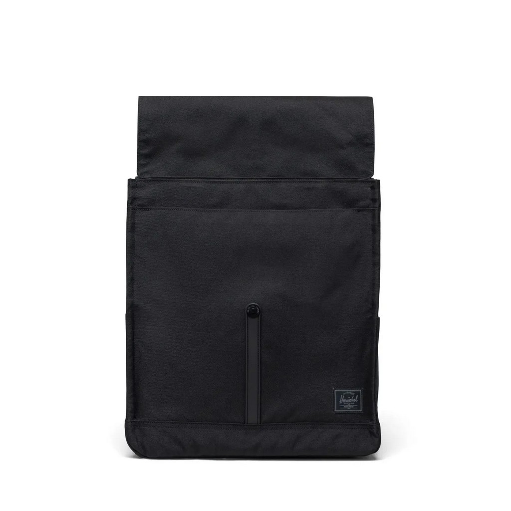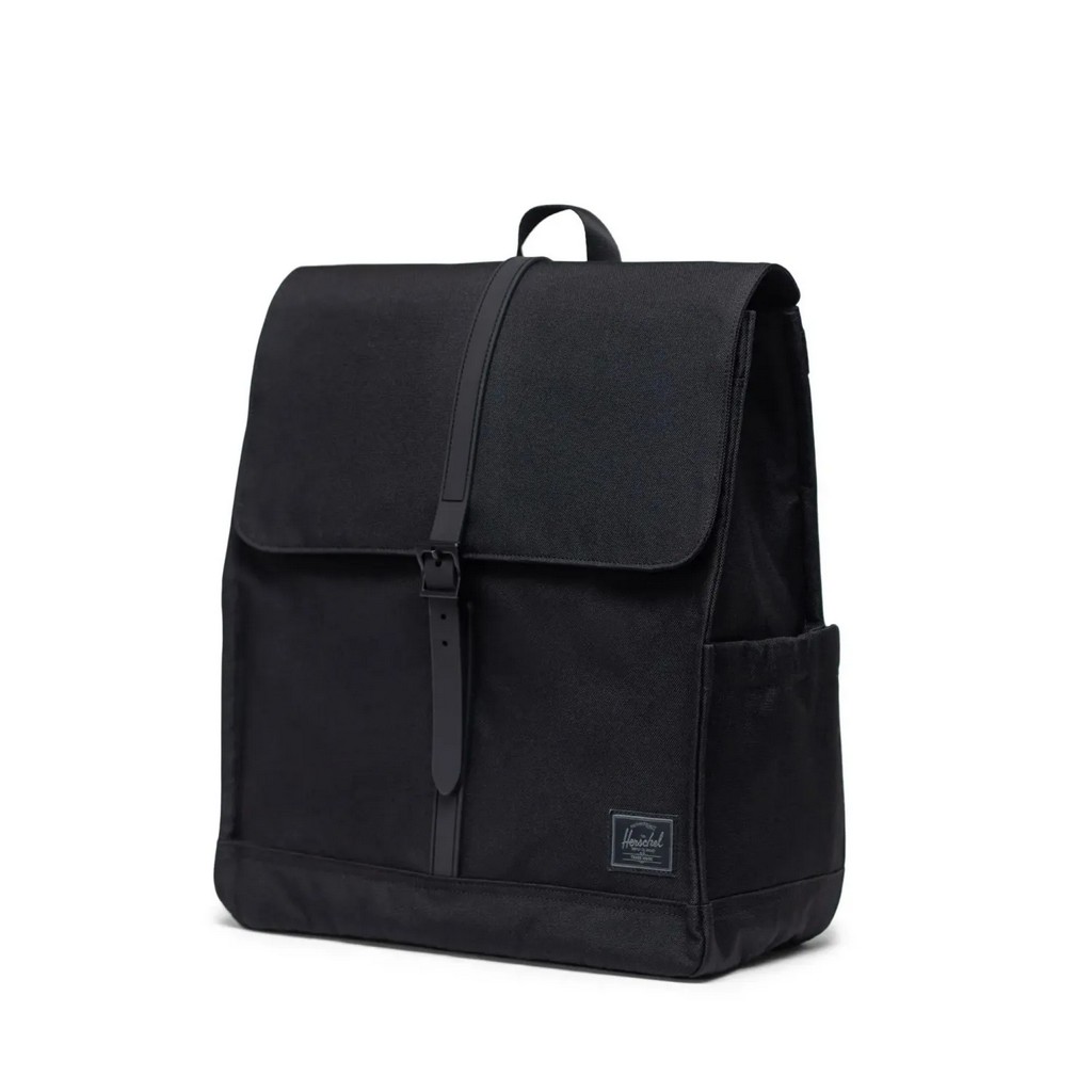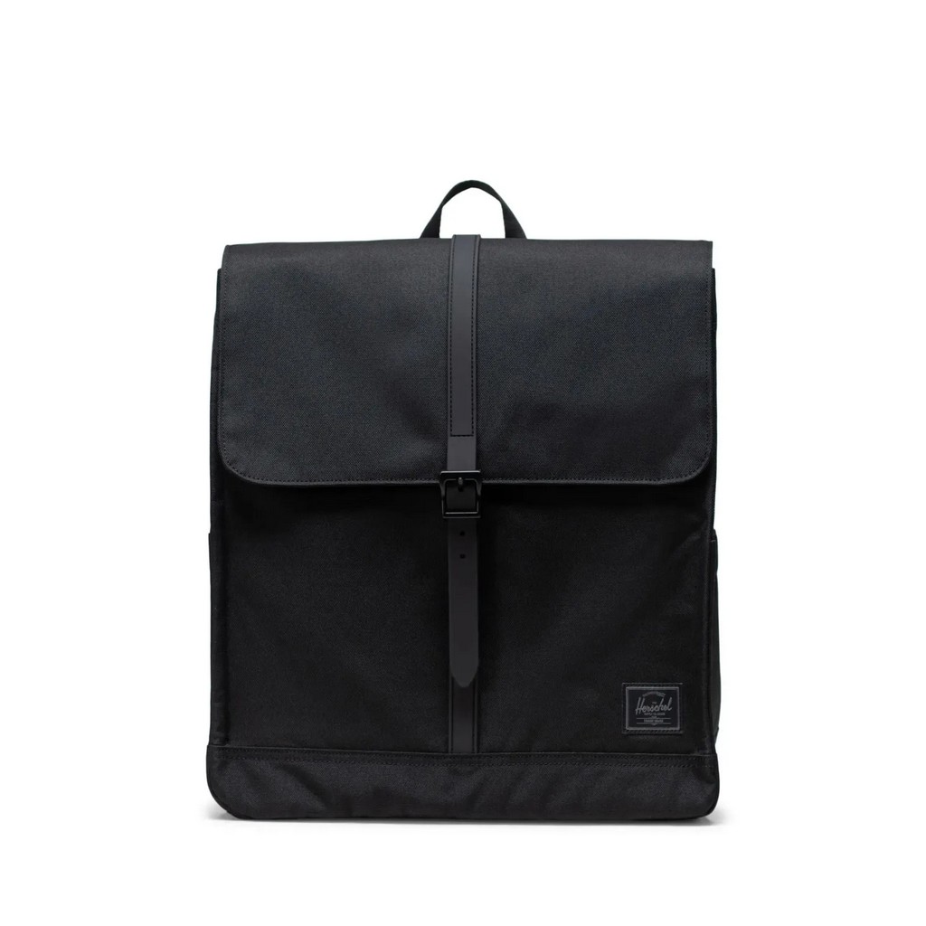 Herschel City unisex σακίδιο πλάτης σε Total Black με λεπτομέρεια στην αριστερή πλευρά έχει το λογότυπο της εταιρίας. Διαθέτει χώρο με επένδυση για laptop. Κλείνει με λουράκι με μαγνήτη που είναι στο ίδιο χρώμα με το σακίδιο. Έχει τσέπη για μπουκάλι νερού που επεκτείνεται για να χωράει διαφορετικά μεγέθη, ενώ ο πλαϊνός χώρος αποθήκευσης είναι ιδανικός για αντικείμενα γρήγορης πρόσβασης.
