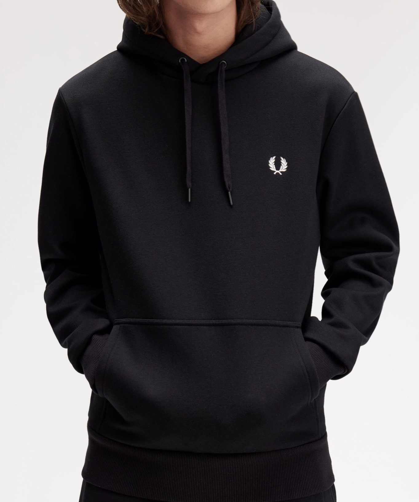 Fred Perry ανδρικό εξαιρετικής ποιότητας μονόχρωμο φούτερ με κουκούλα, κατασκευασμένο από μείγμα βαμβακιού και ανακυκλωμένου πολυεστέρα για άνεση και περιβαλλοντική συνείδηση. Έχει κανονική εφαρμογή που προσφέρουν ελευθερία κινήσεων στην καθημερινή εμφάνιση σας.. Διαθέτει μακριά μανίκια με ριμπ μανσέτες και είναι ιδανικό για όλες τις κρύες εποχές. Έχει κεντητό λευκό διακριτικό logo μπροστά  και γραφική εκτύπωση στην πλάτη σε ίδια απόχρωση με το φούτερ που προσθέτει μια μοντέρνα πινελιά.