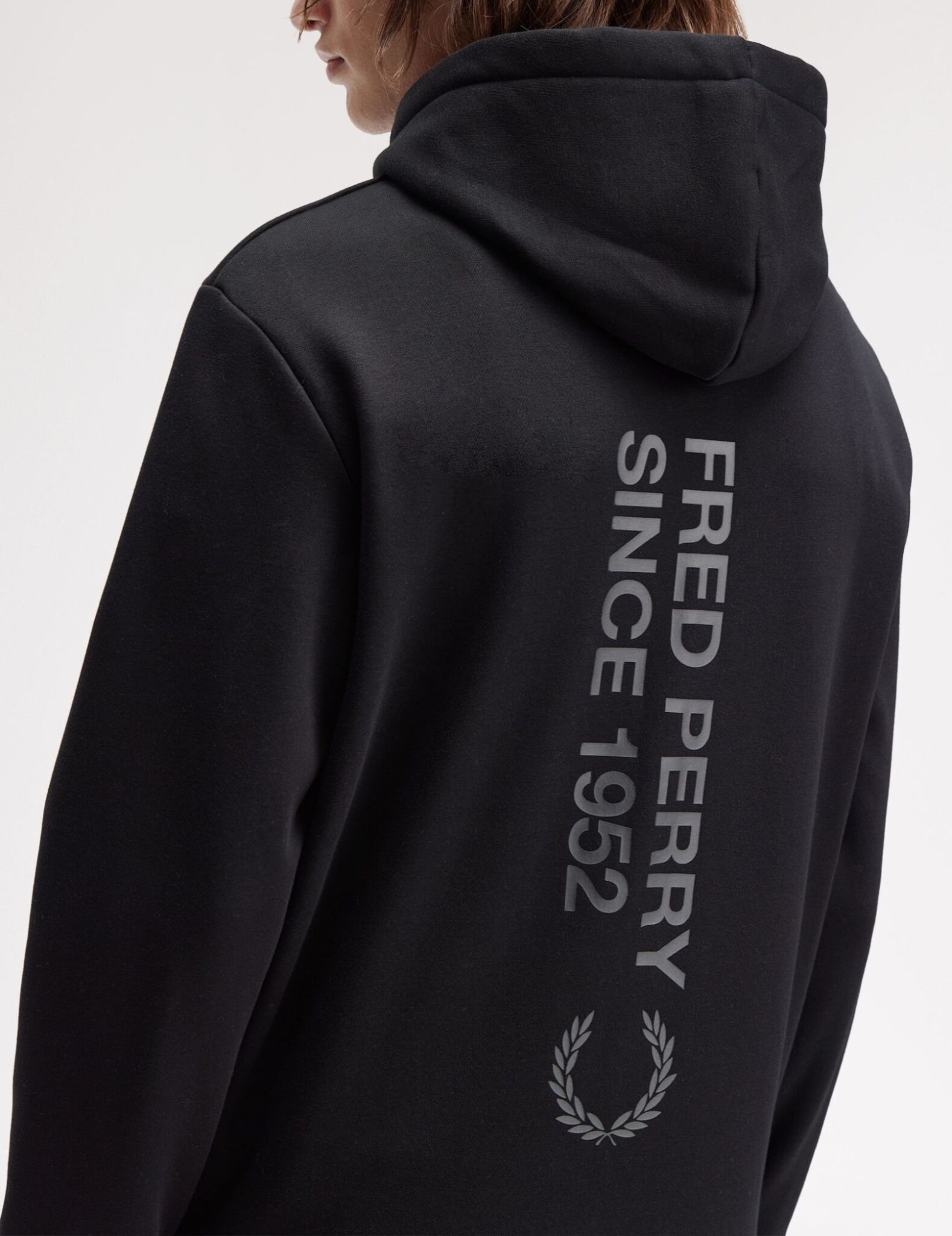 Fred Perry ανδρικό εξαιρετικής ποιότητας μονόχρωμο φούτερ με κουκούλα.  Έχει κεντητό λευκό διακριτικό logo μπροστά  και γραφική εκτύπωση στην πλάτη σε ίδια απόχρωση με το φούτερ που προσθέτει μια μοντέρνα πινελιά.