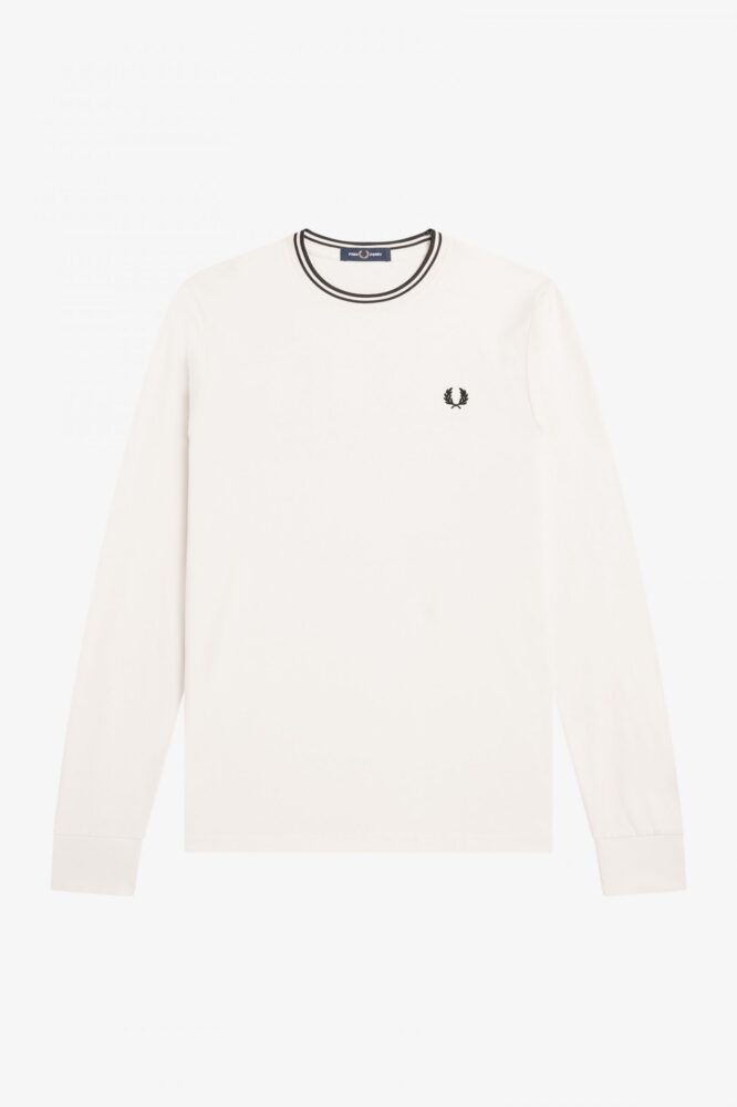 Fred Perry Μακρυμάνικη Λευκή Μακό Μπλούζα M9602