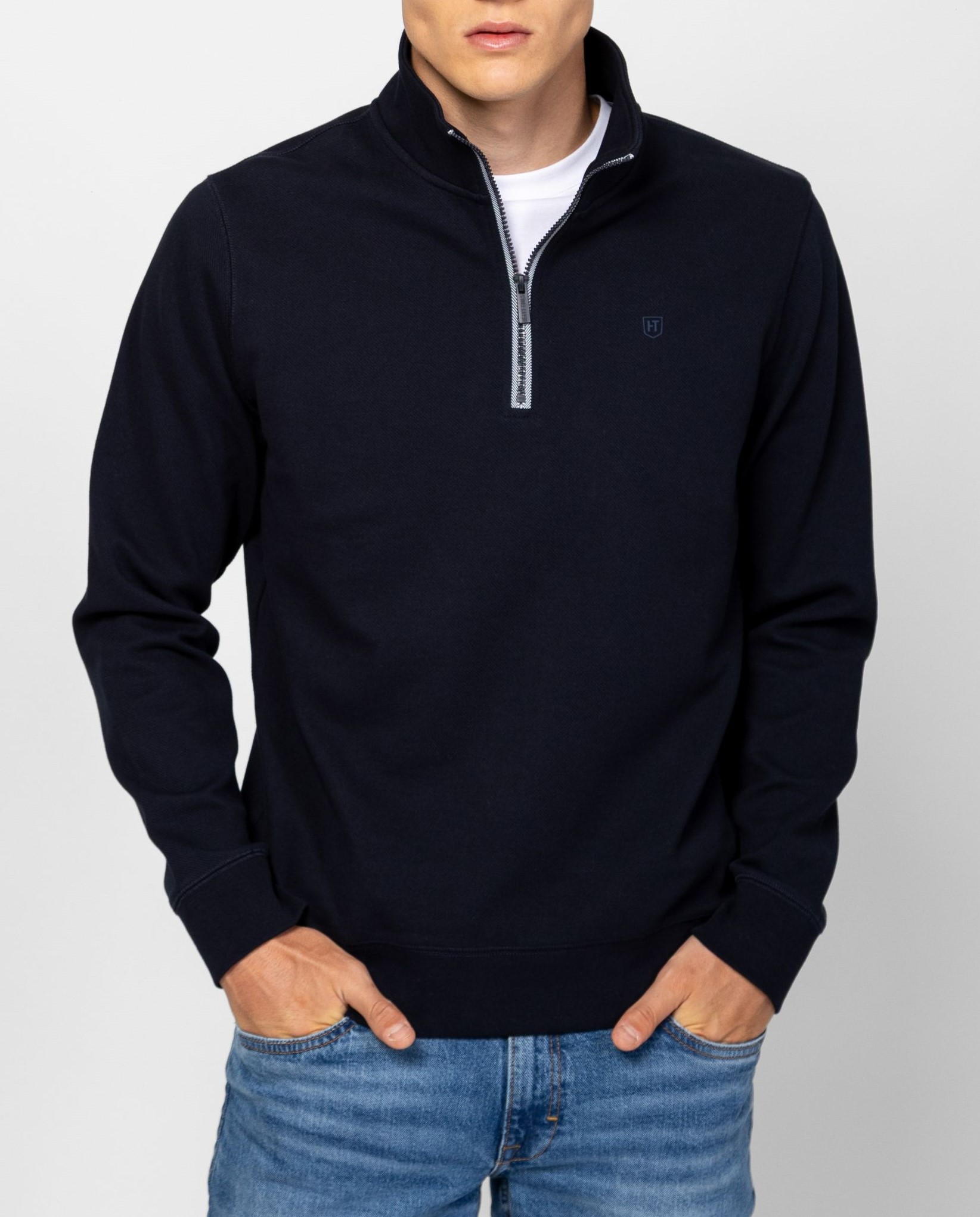 Heavy Tools Terlo ανδρικό half zip φούτερ σε κλασική γραμμή και με rib μανσέτες, έχει εκτυπωμένο διακριτικό λογότυπο στο πλάι.