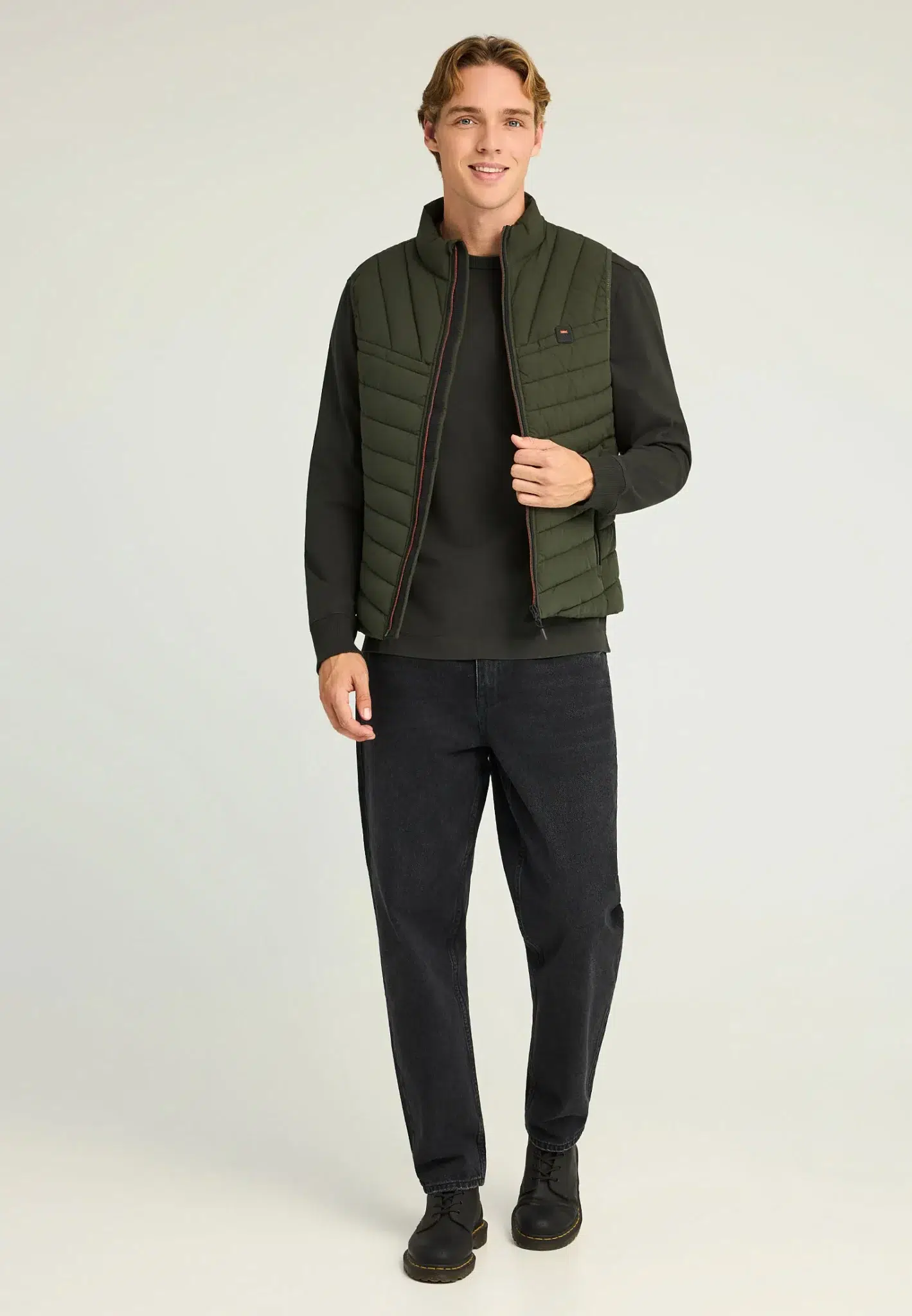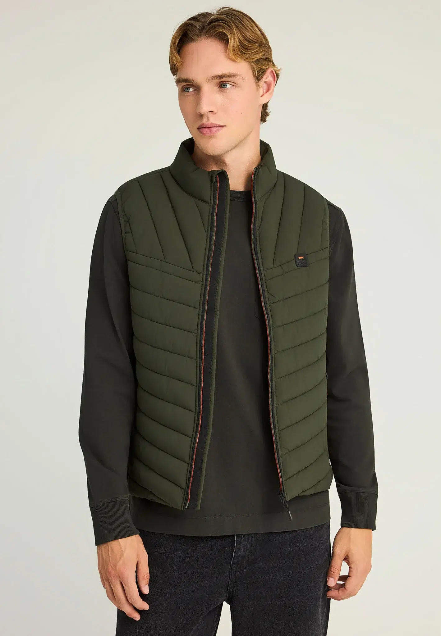 Αναβάθμισε το στυλ σου με αυτό το αμάνικο ανδρικό καπιτονέ μπουφάν – το απόλυτο layering κομμάτι για κάθε εποχή. Σχεδιασμένο σε κανονική γραμμή με μήκος μέχρι το ισχίο, προσφέρει άνεση και ευκολία στην κίνηση, ενώ ο ψηλός λαιμός και το κλείσιμο με φερμουάρ προσθέτουν λειτουργικότητα και urban χαρακτήρα. Η καπιτονέ υφή σε πολυεστερικό ύφασμα και η διακριτική λεπτομέρεια λογότυπου αναδεικνύουν τη minimal αλλά δυναμική αισθητική του.