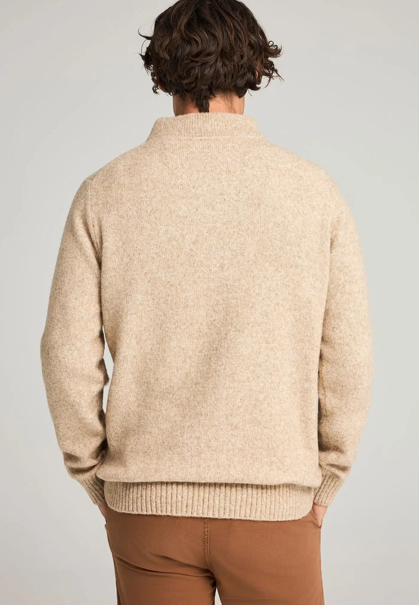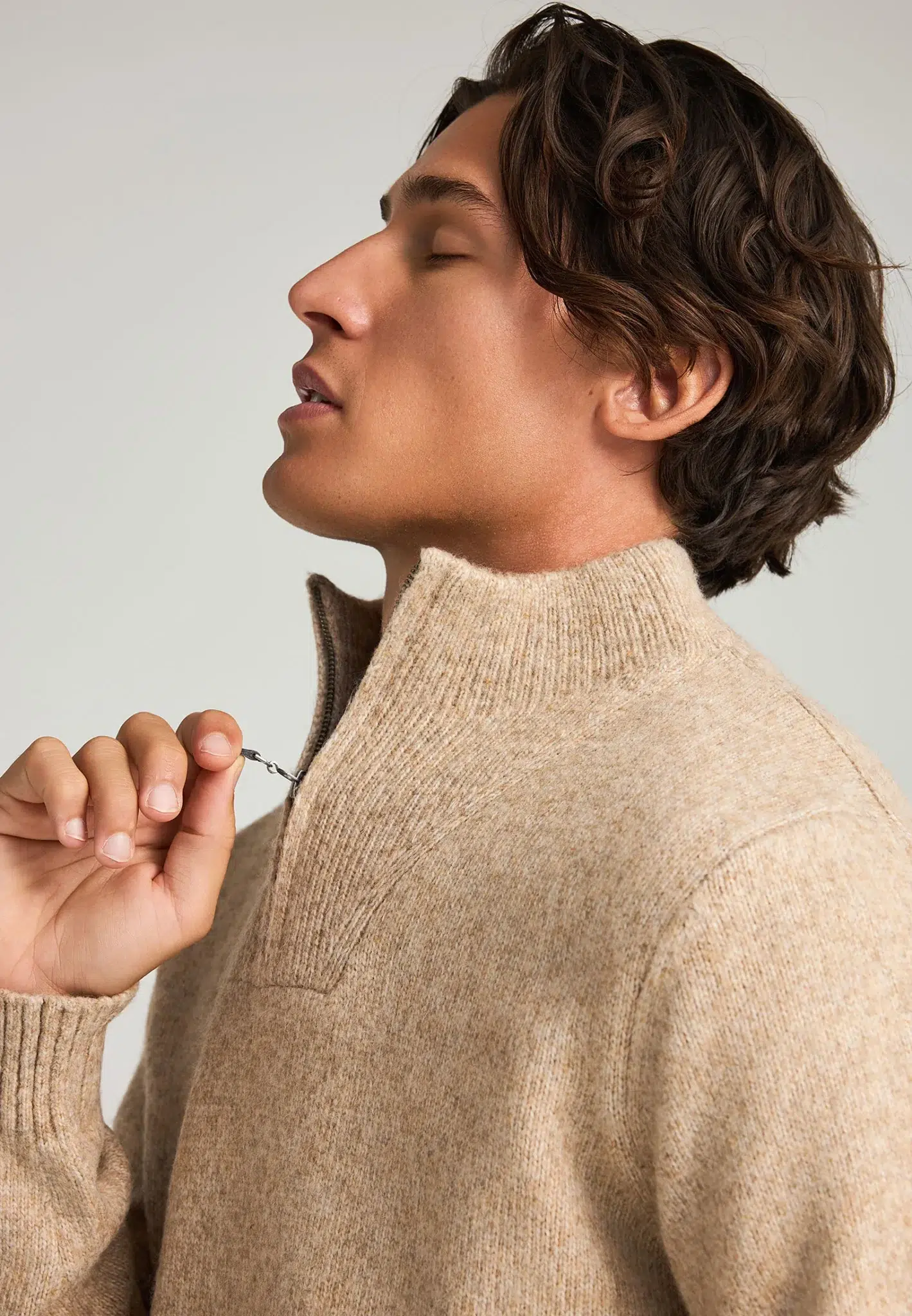 Ανδρικό πουλόβερ σε κανονική εφαρμογή, φτιαγμένο από μίγμα μαλλιού για ζεστασιά και στυλ τις κρύες μέρες του φθινοπώρου και του χειμώνα. Ο ψιλός λαιμός half-zip προσφέρει άνεση και κομψή κάλυψη, ενώ τα μακριά μανίκια το κάνουν ιδανικό για layered outfits. Συνδύασε το με σκούρα τζιν και μπότες για μια χαλαρή αλλά καλοδουλεμένη εμφάνιση.