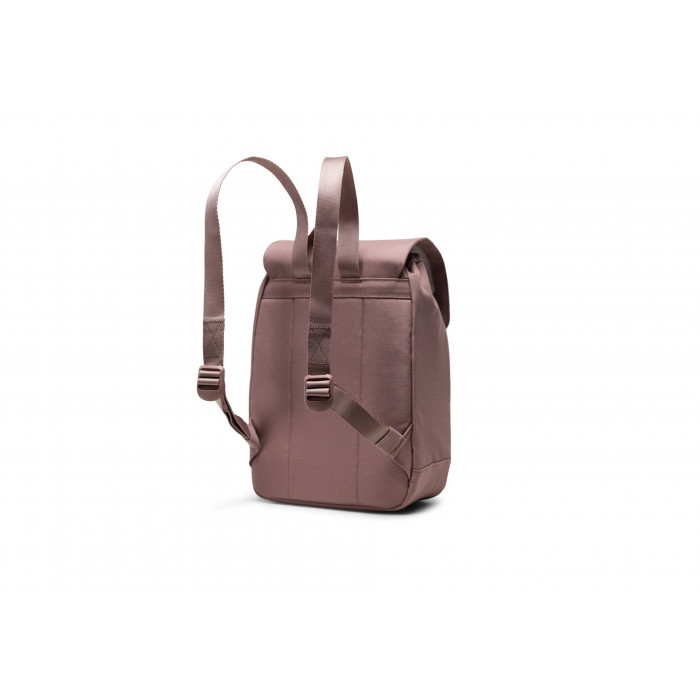 Herschel Retreat Mini Σακίδιο πλάτης σε σταχτί ροζ χρώμα και στο ίδιο χρώμα και οι υπόλοιπες λεπτομέρειες. Διαθέτει εύκολο κλείσιμο με κορδόνι, ρυθμιζόμενους ιμάντες ώμου και μικρή μπροστινή θήκη. Το μέγεθος του σακιδίου είναι για να μεταφέρετε ακριβώς αυτό που χρειάζεστε και είναι κατασκευασμένο από 100% ανακυκλωμένα υφάσματα EcoSystem.