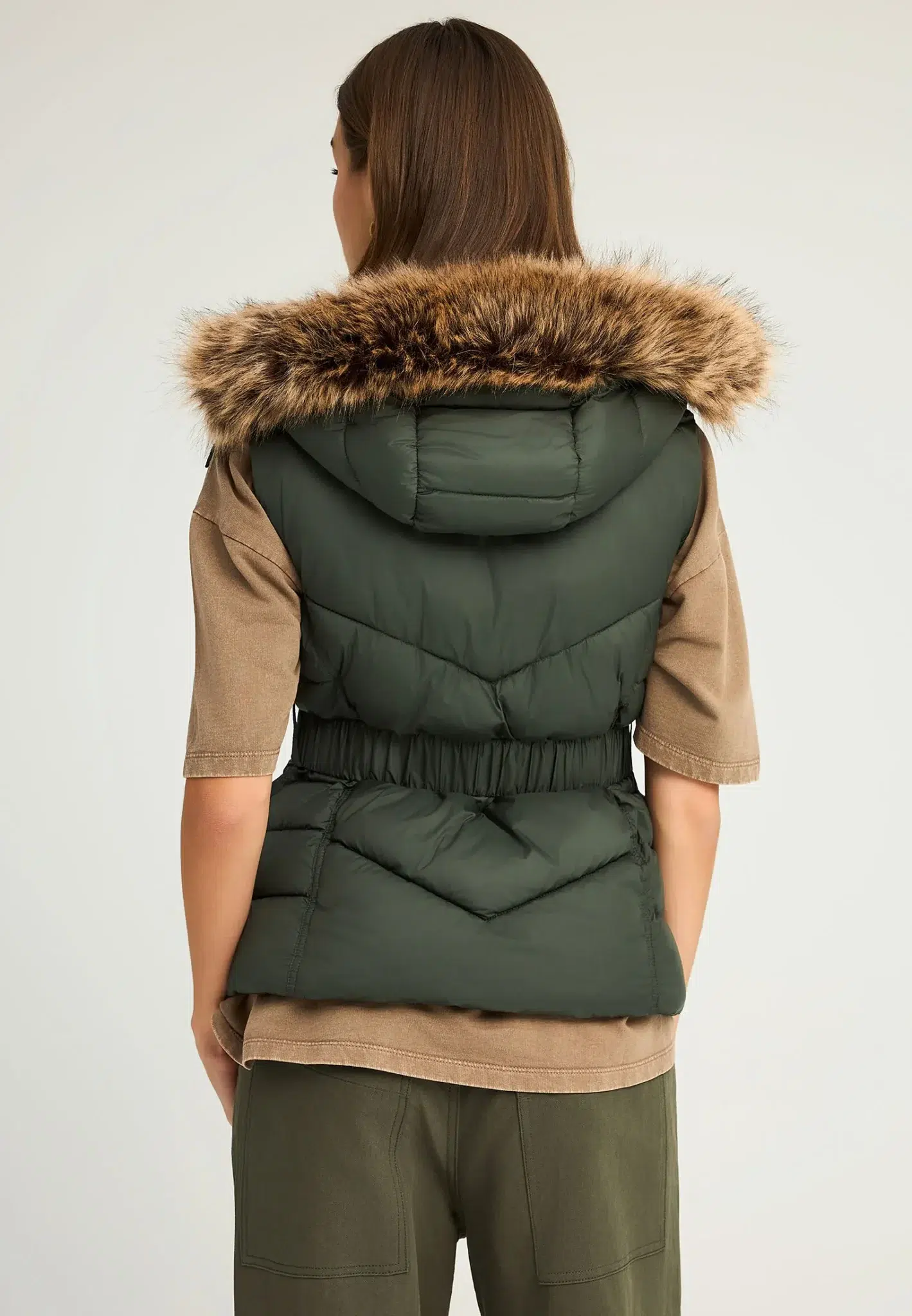 Funky Buddha Γυναικείο Καπιτονέ Αμάνικο Μπουφάν με Κουκούλα.