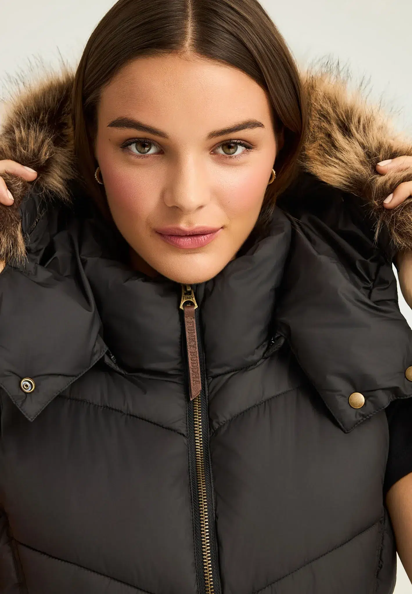 Ανακάλυψε το απόλυτο αμάνικο καπιτονέ μπουφάν που συνδυάζει άνεση και σύγχρονο στυλ. Σχεδιασμένο σε κανονική γραμμή, προσφέρει ζεστασιά χωρίς βάρος, ιδανικό για τις φθινοπωρινές και χειμερινές εξορμήσεις σου. Η funnel λαιμόκοψη με κουκούλα γούνας χαρίζει cozy αίσθηση και premium χαρακτήρα, ενώ οι πρακτικές welt τσέπες και το φερμουάρ ολοκληρώνουν το λειτουργικό design. Με μήκος έως τους γοφούς και minimal μονόχρωμο look, γίνεται το ιδανικό layering κομμάτι για urban περιπέτειες.