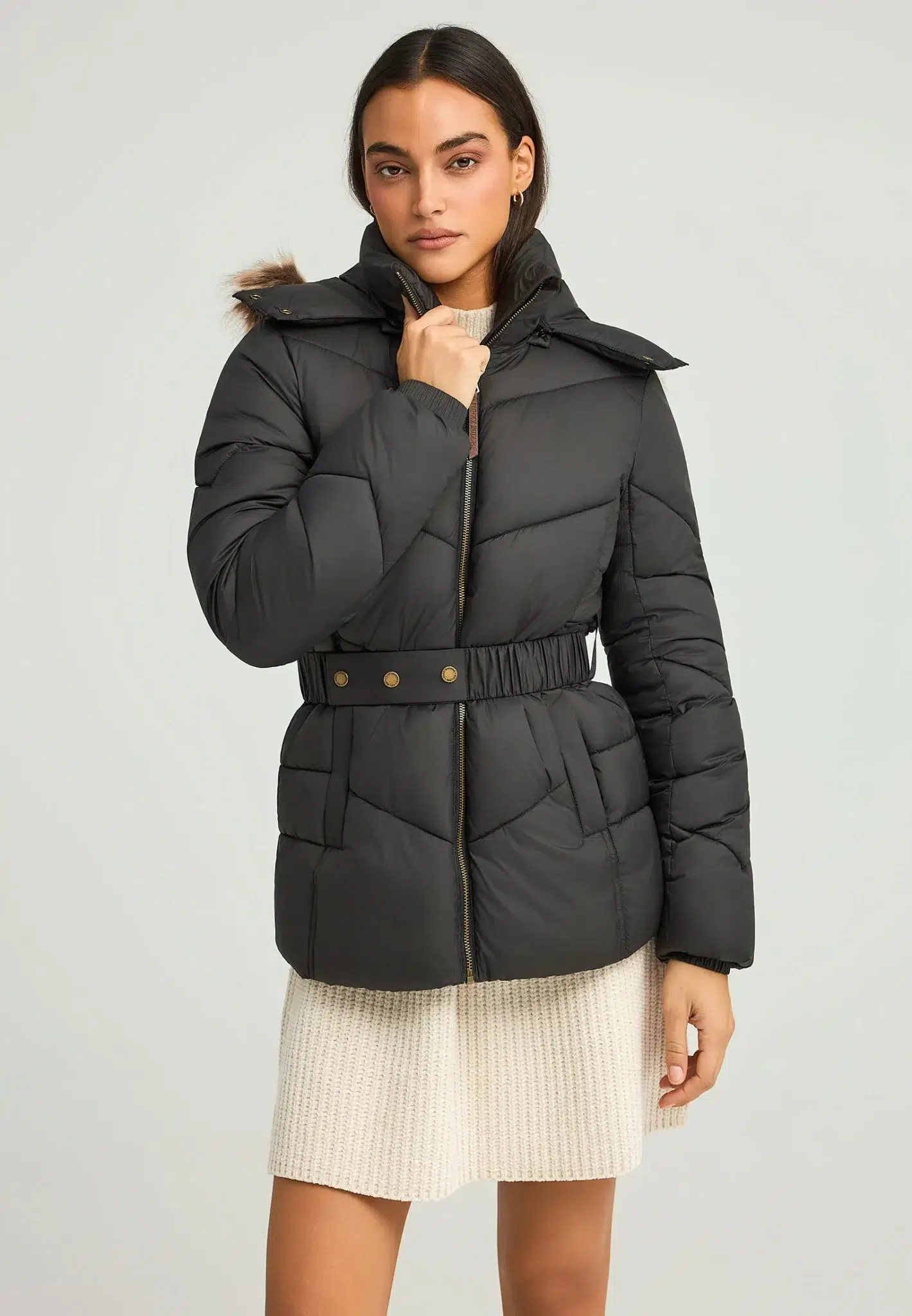 Απόλαυσε την άνεση και τη ζεστασιά αυτού του μπουφάν από συνθετικό ύφασμα με ψεύτικη γούνα, το απόλυτο must-have για τη φθινοπωρινή και χειμερινή σεζόν. Με κανονική εφαρμογή και ίσια κοπή, χαρίζει ένα minimal αλλά στυλάτο look. Ο ψηλός funnel λαιμός με κουκούλα προσφέρει επιπλέον κάλυψη, ενώ τα μακριά μανίκια και το μήκος μέχρι τους γοφούς εξασφαλίζουν πλήρη προστασία. Διαθέτει πρακτικό φερμουάρ για εύκολη εφαρμογή, ελαστικές μανσέτες και λοξές τσέπες για extra λειτουργικότητα. Φόρεσε το πάνω από το καθημερινό σου outfit και είσαι έτοιμη για κάθε περιπέτεια με στυλ.