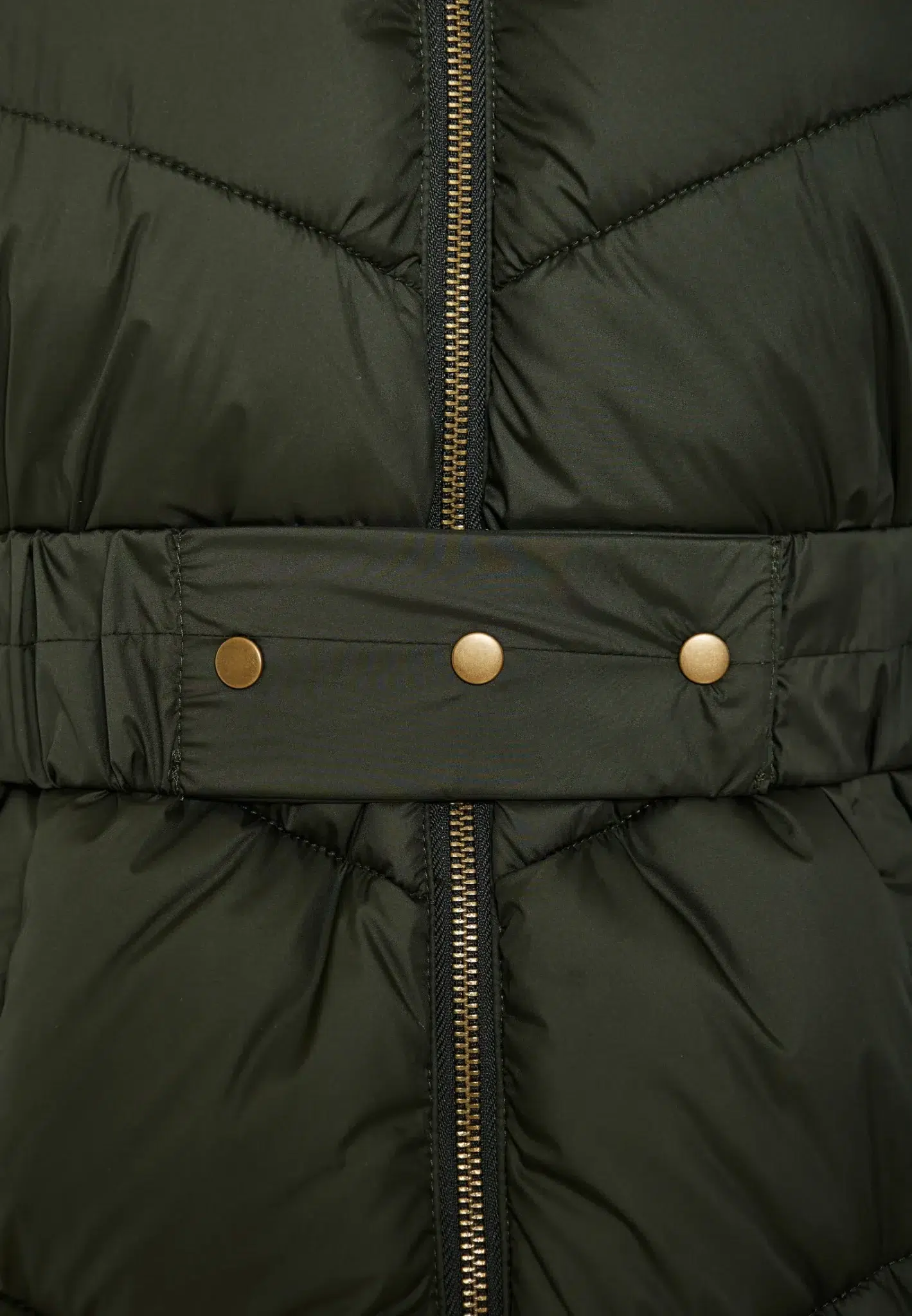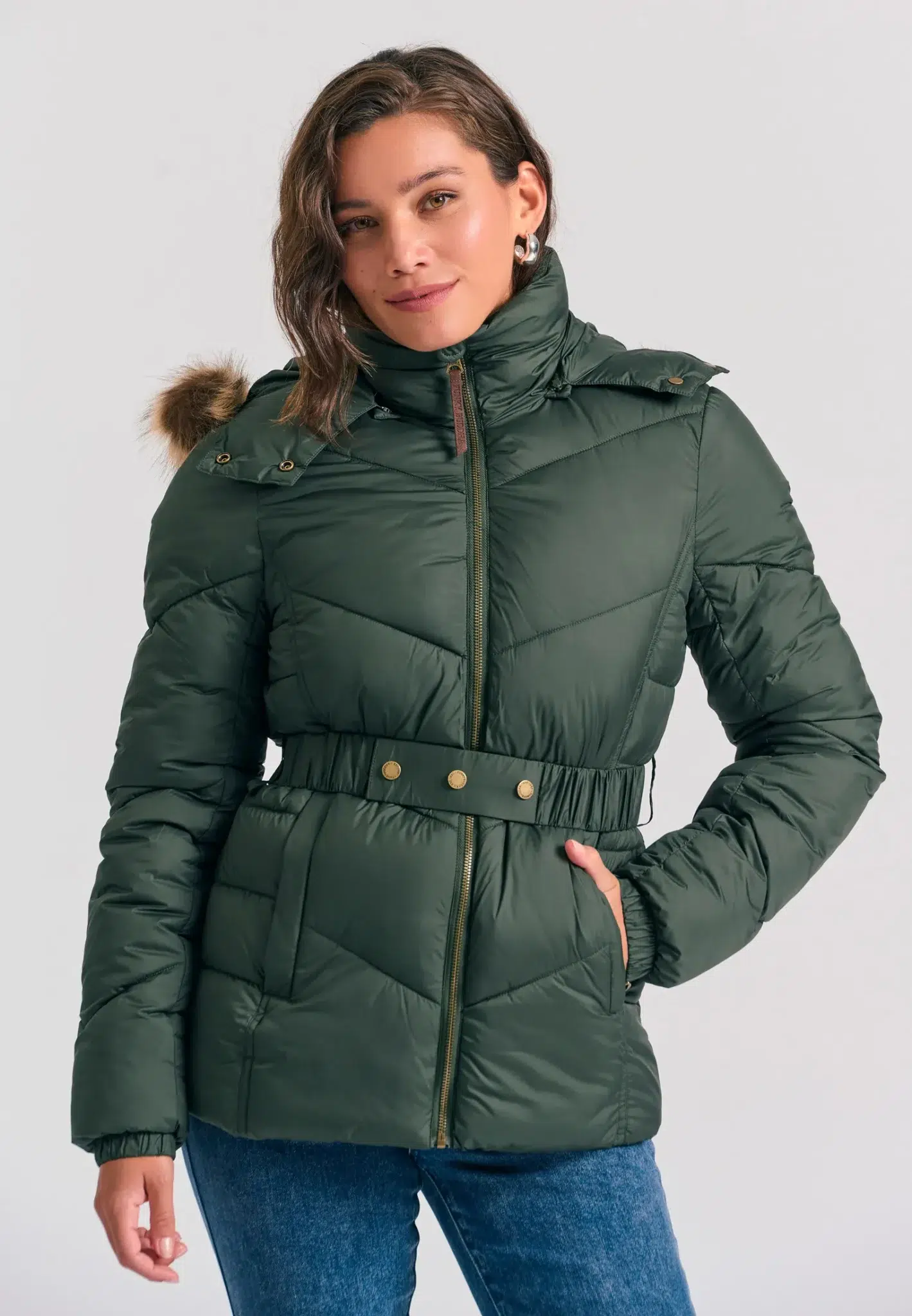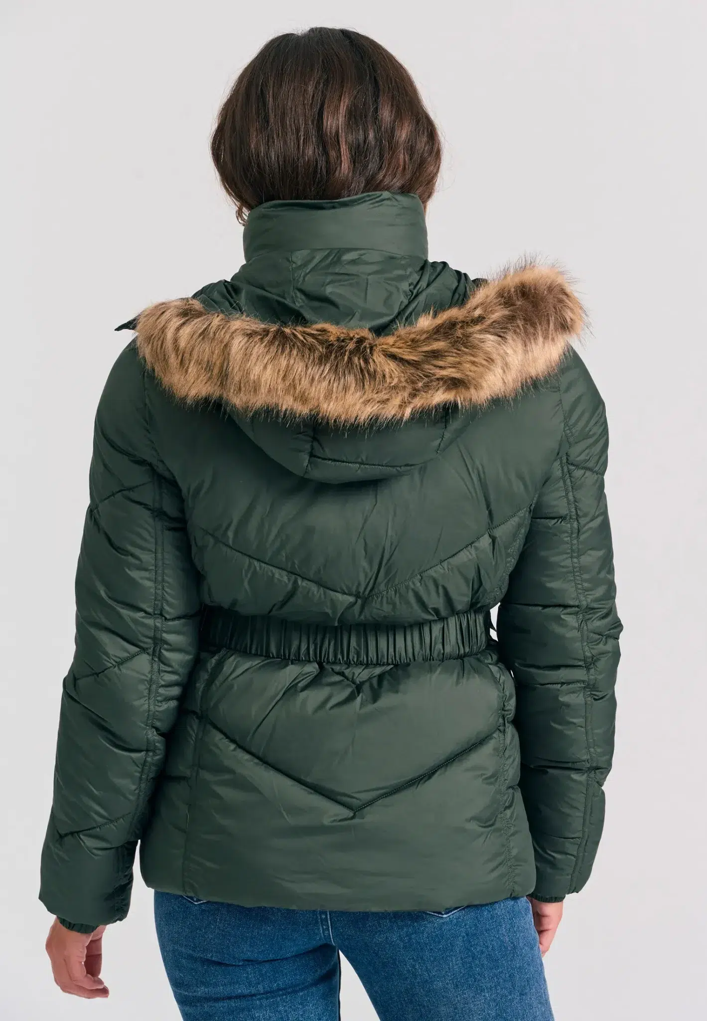 Απόλαυσε την άνεση και τη ζεστασιά αυτού του μπουφάν από συνθετικό ύφασμα με ψεύτικη γούνα, το απόλυτο must-have για τη φθινοπωρινή και χειμερινή σεζόν. Με κανονική εφαρμογή και ίσια κοπή, χαρίζει ένα minimal αλλά στυλάτο look. Ο ψηλός funnel λαιμός με κουκούλα προσφέρει επιπλέον κάλυψη, ενώ τα μακριά μανίκια και το μήκος μέχρι τους γοφούς εξασφαλίζουν πλήρη προστασία. Διαθέτει πρακτικό φερμουάρ για εύκολη εφαρμογή, ελαστικές μανσέτες και λοξές τσέπες για extra λειτουργικότητα. Φόρεσε το πάνω από το καθημερινό σου outfit και είσαι έτοιμη για κάθε περιπέτεια με στυλ.