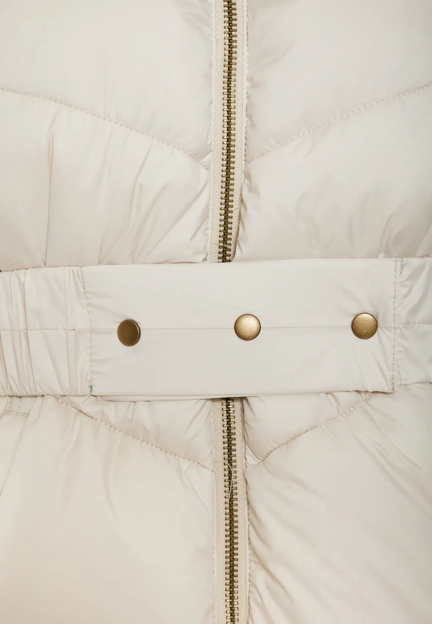 Απόλαυσε την άνεση και τη ζεστασιά αυτού του μπουφάν από συνθετικό ύφασμα με ψεύτικη γούνα, το απόλυτο must-have για τη φθινοπωρινή και χειμερινή σεζόν. Με κανονική εφαρμογή και ίσια κοπή, χαρίζει ένα minimal αλλά στυλάτο look. Ο ψηλός funnel λαιμός με κουκούλα προσφέρει επιπλέον κάλυψη, ενώ τα μακριά μανίκια και το μήκος μέχρι τους γοφούς εξασφαλίζουν πλήρη προστασία. Διαθέτει πρακτικό φερμουάρ για εύκολη εφαρμογή, ελαστικές μανσέτες και λοξές τσέπες για extra λειτουργικότητα. Φόρεσε το πάνω από το καθημερινό σου outfit και είσαι έτοιμη για κάθε περιπέτεια με στυλ.