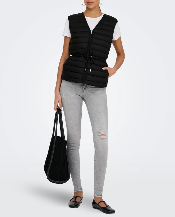 JDY Γυναικείο αμάνικο μπουφάν καπιτονέ με κορδόνι στη μέση.