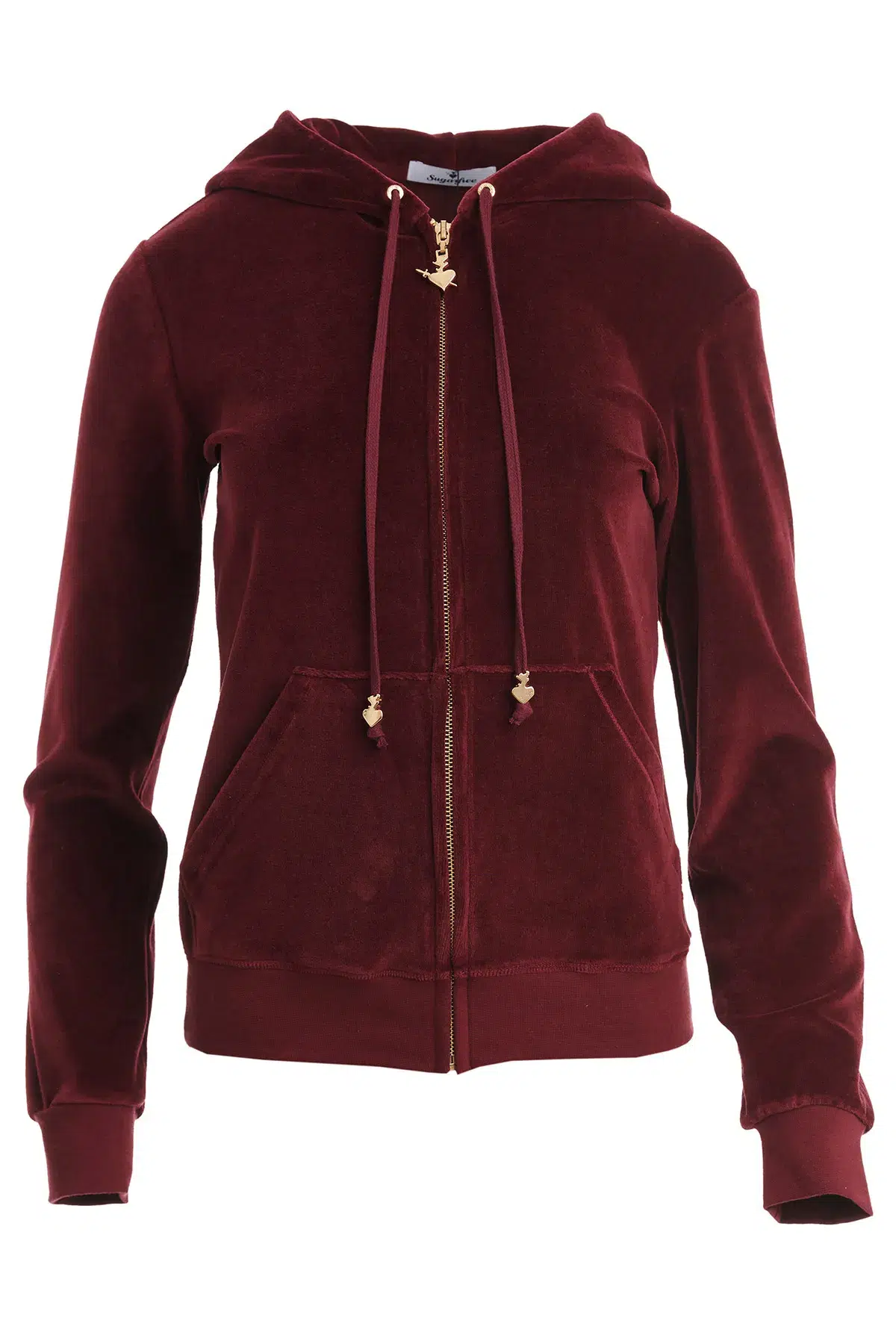 Απόλυτη άνεση και κομψότητα για όλες τις ώρες!  Κλασσικό σετ φόρμας βελουτέ ζακέτα και παντελόνι της sugarfree. Η κλασική βελουτέ ζακέτα διαθέτει μπροστινές τσέπες, φερμουάρ με επιχρυσωμένο λογότυπο, κουκούλα με ρυθμιζόμενο κορδόνι και λάστιχο στη μέση και στα μανίκια. Το παντελόνι φόρμας έχει μπροστινές και πίσω τσέπες, λάστιχο στην μέση με ρυθμιζόμενο κορδόνι.