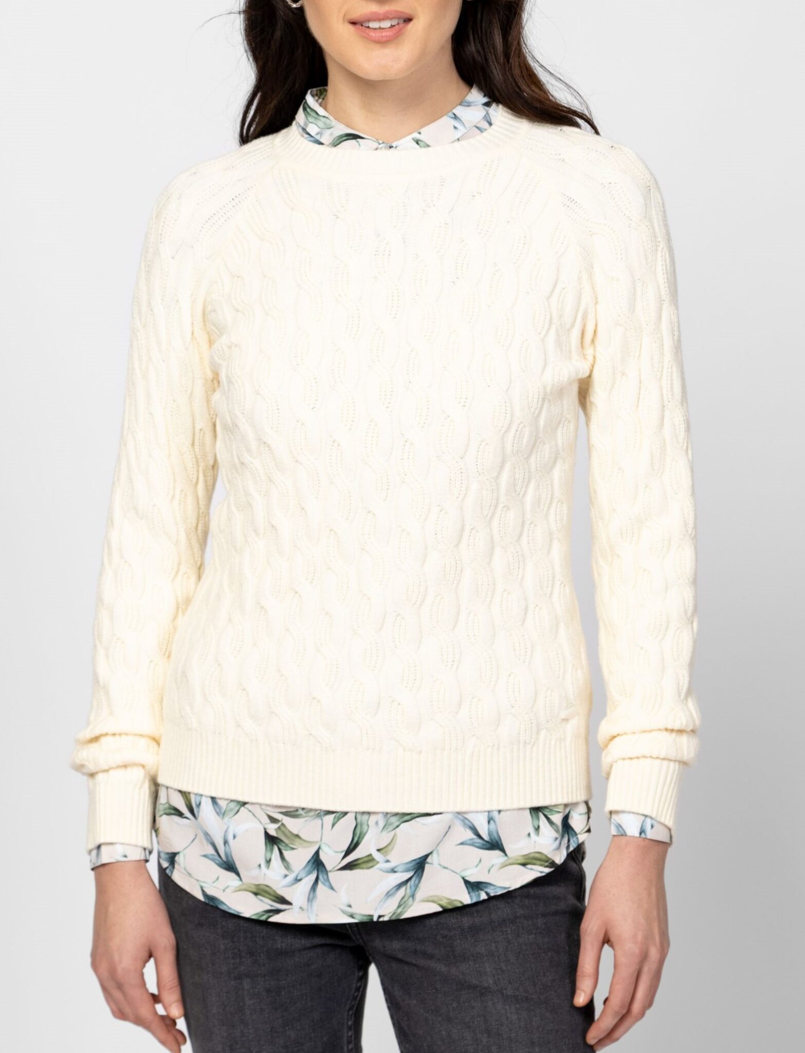 HEAVY TOOLS Γυναικείο Πουλόβερ Hava σε κανονική γραμμή, με πλέξη κοτσίδα, στρογγυλή λαιμόκοψη και πλαστικό λογότυπο κάτω αριστερά.