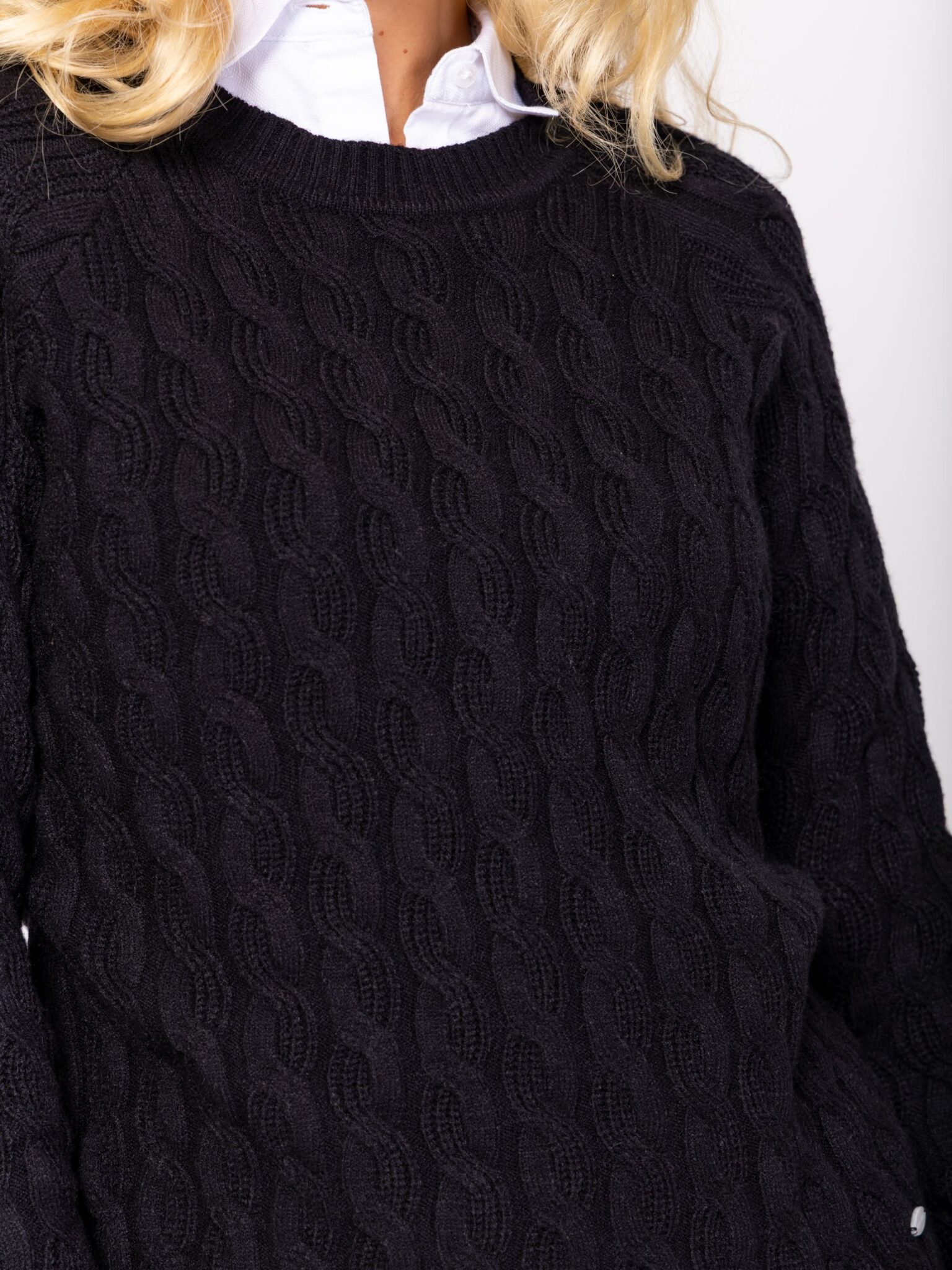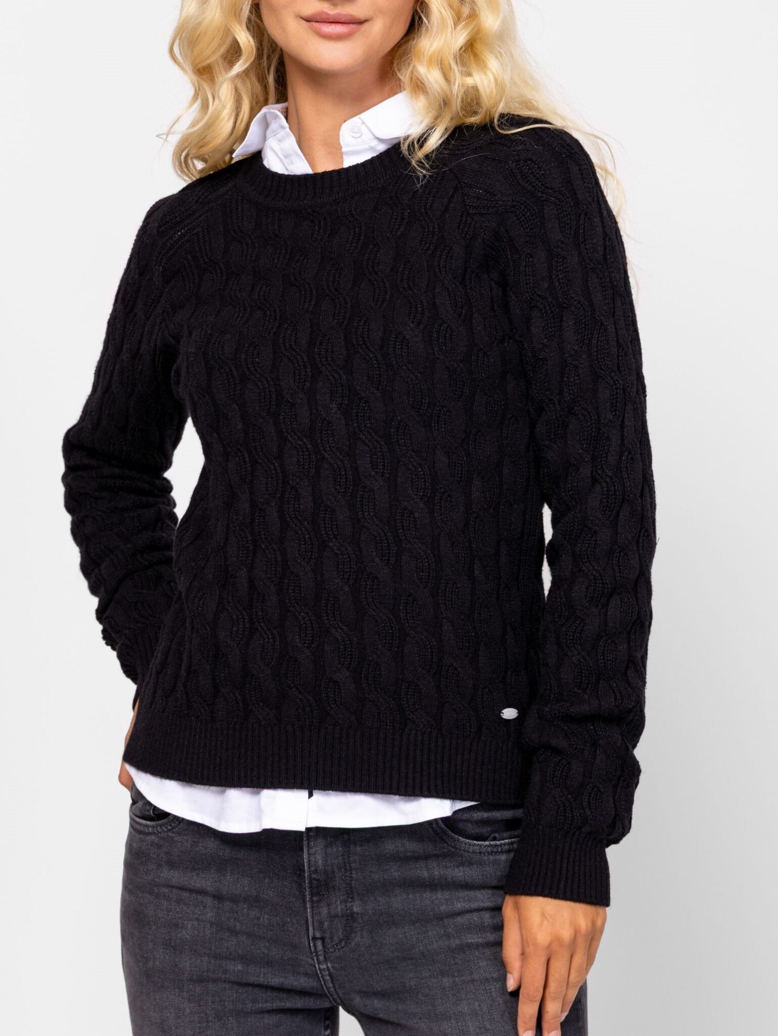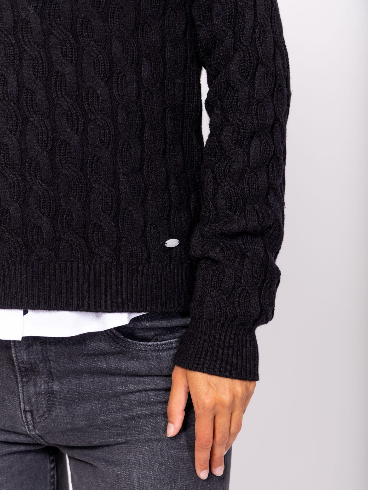 HEAVY TOOLS Γυναικείο Πουλόβερ Hava σε κανονική γραμμή, με πλέξη κοτσίδα, στρογγυλή λαιμόκοψη και λογότυπο κάτω αριστερά.