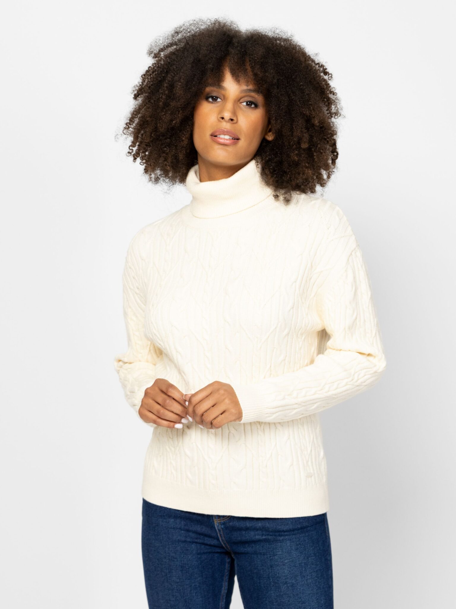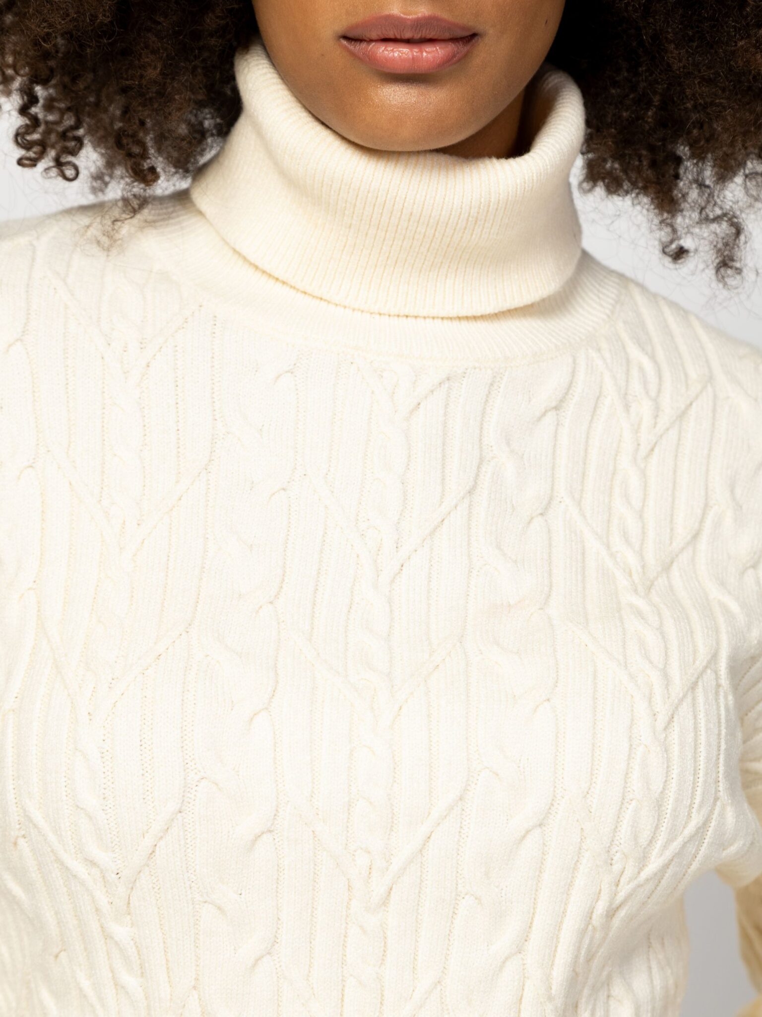 HEAVY TOOLS χειμερινή συλλογή γυναικείο πουλόβερ Halpa σε άνετη γραμμή, με πολύ όμορφη πλέξη, ψιλό λαιμό και πλαστικό λογότυπο κάτω αριστερά.