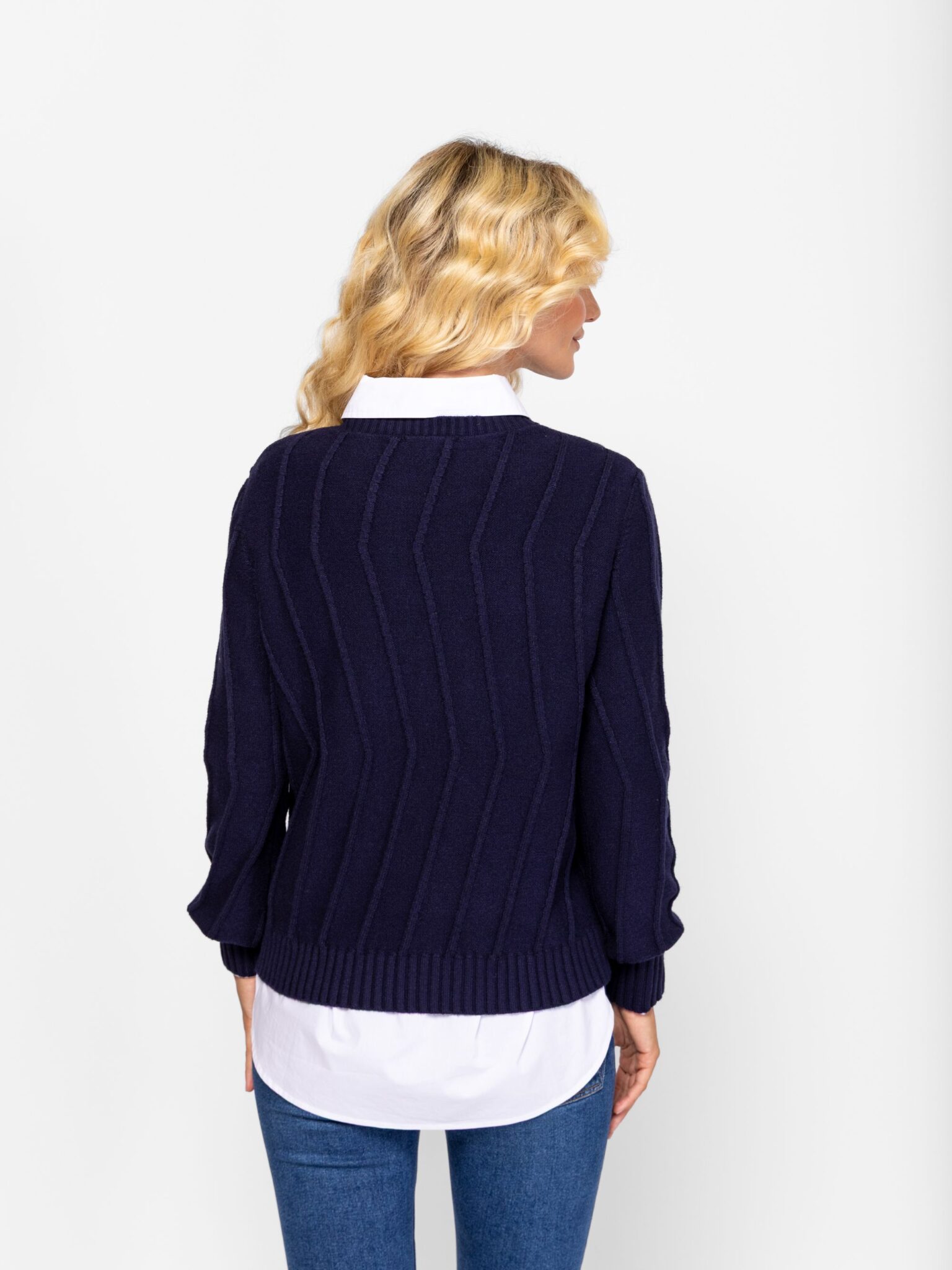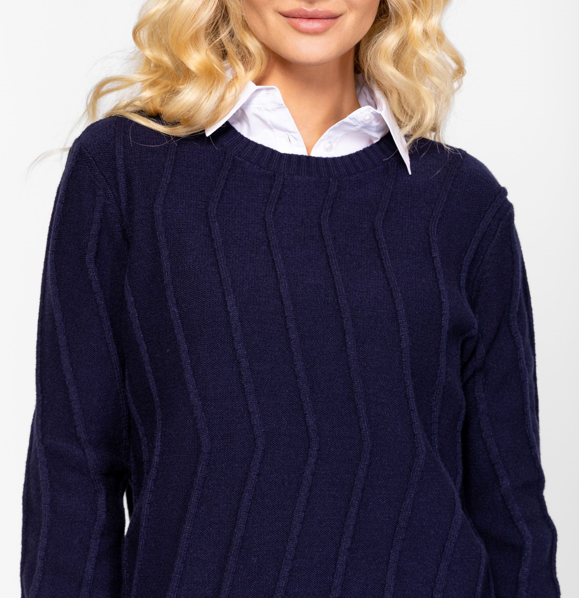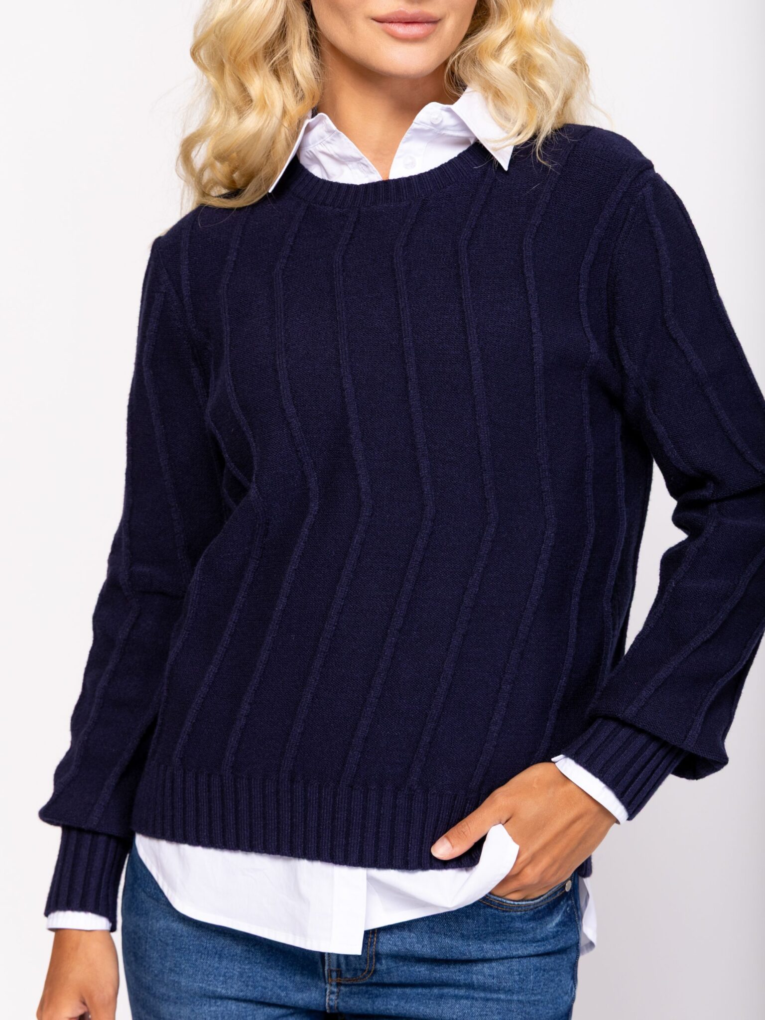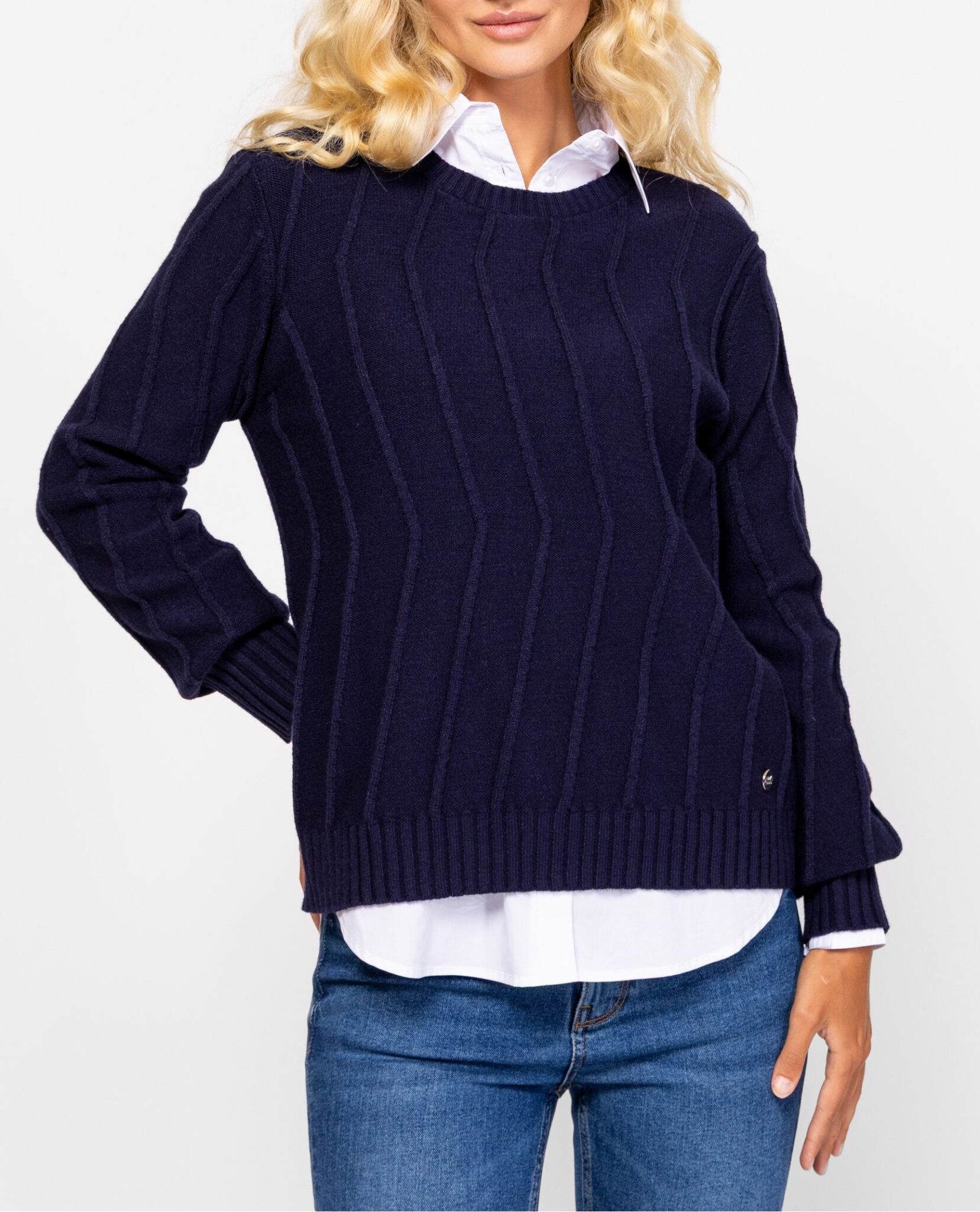 Γυναικείο πλεκτό πουλόβερ HEAVY TOOLS Hatma T53031W2501 σε ίσια γραμμή και στρογγυλή λαιμόκοψη, έχει μεταλλικό λογότυπο κάτω αριστερά.
