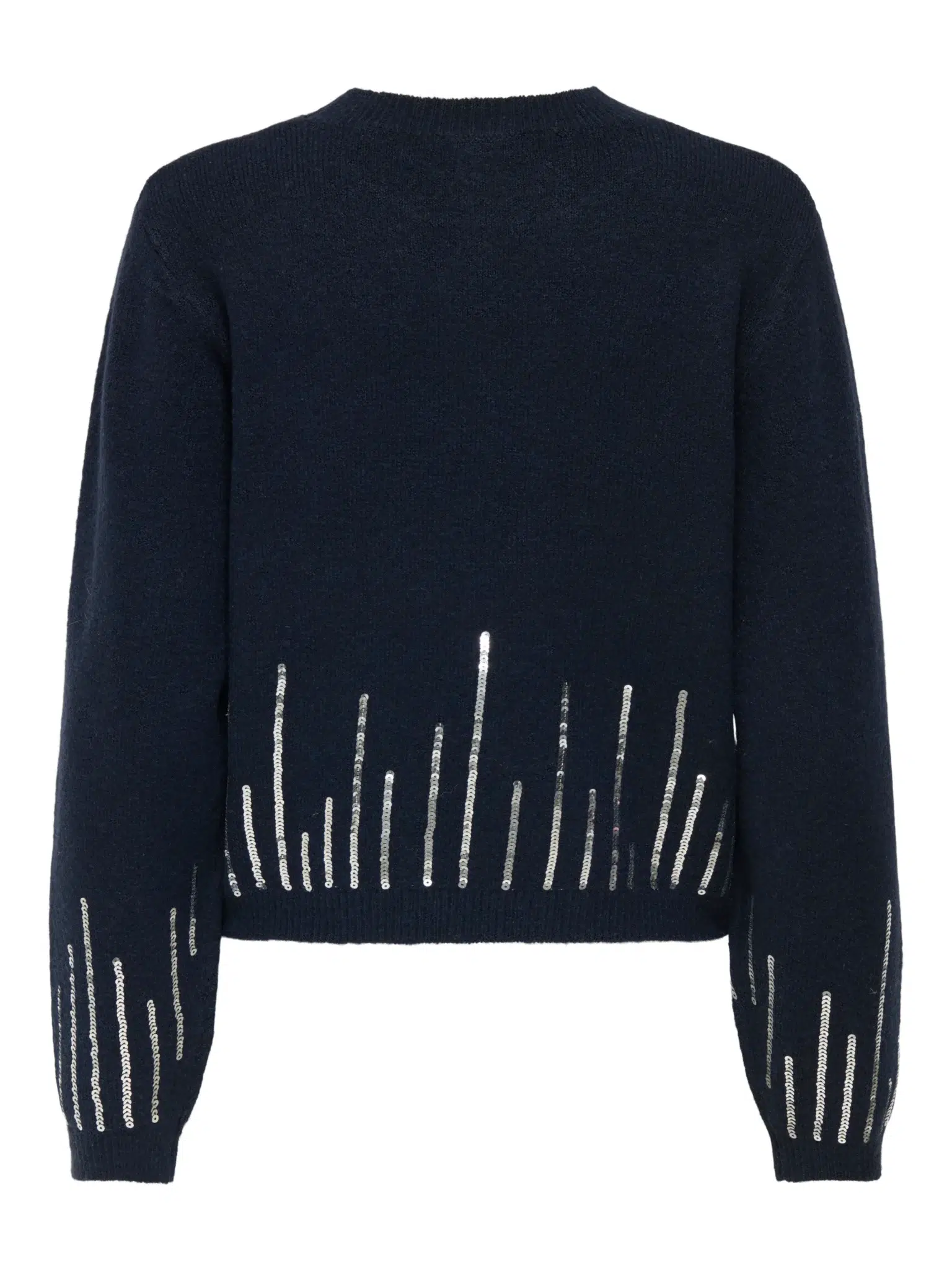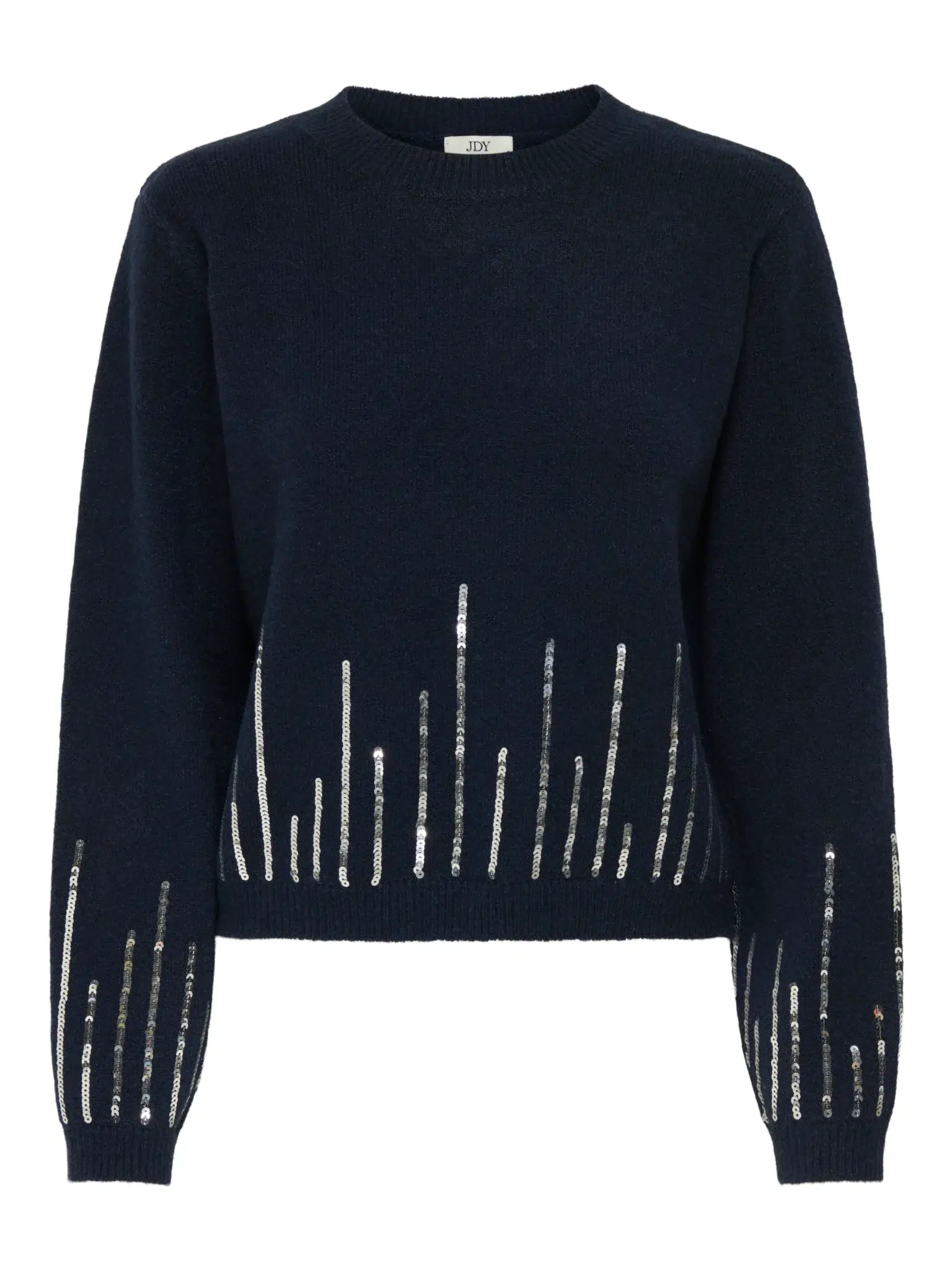 JDY Madison πλεκτό γυναικείο πουλόβερ σε κανονική γραμμή και λεπτομέρειές με ασημένιες παγιέτες με στρογγυλή λαιμόκοψη.