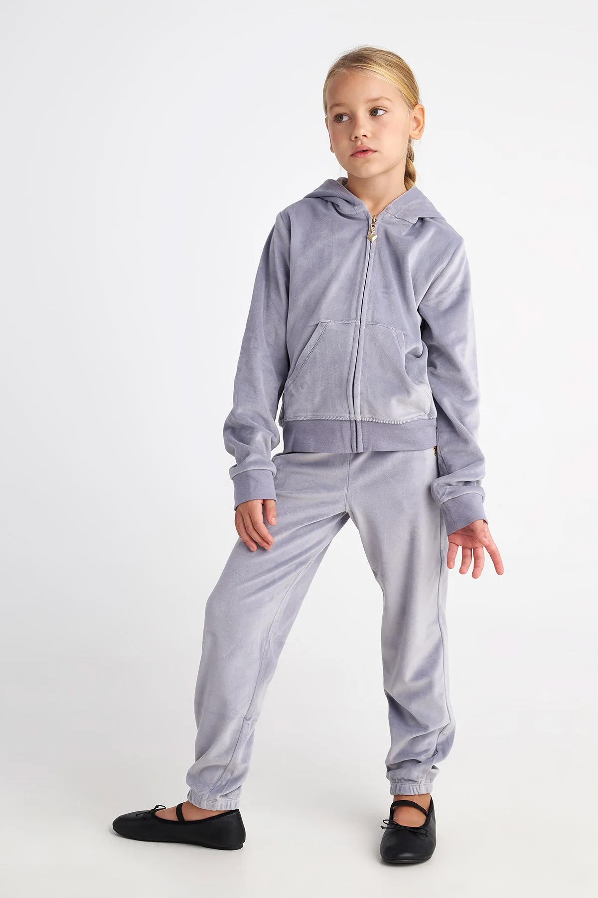 Παιδικό μονόχρωμο super soft shiny βελουτέ σετ φόρμας. Ζακέτα με κουκούλα σε μονόχρωμο στυλ. Διαθέτει φερμουάρ με χρυσό λογότυπο στο μπροστινό μέρος, λάστιχο στη μέση και τα μανίκια και δύο τσεπάκια μπροστά. Παντελόνι σε ίσια γραμμή με λάστιχο στον αστράγαλο. Διαθέτει λάστιχο στη μέση για σταθερή εφαρμογή και SugarFree λογότυπο στο πλάι.