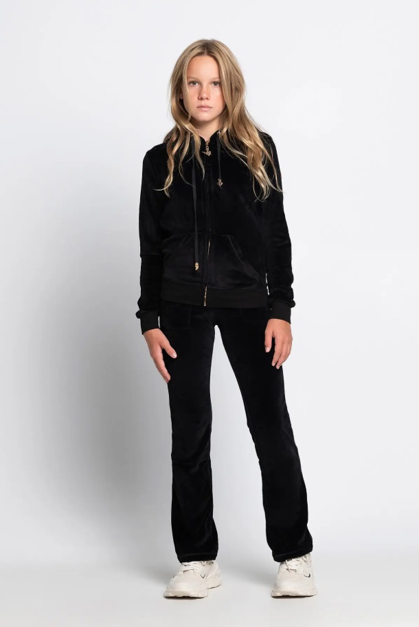 Εφηβικό βελουτέ παντελόνι με μπροστινές και πίσω τσέπες. Διαθέτει λάστιχο στην μέση με ρυθμιζόμενο κορδόνι με διακοσμητικά λογότυπα. Η εφαρμογή του είναι άνετη. Ιδανικό παντελόνι για τα κορίτσια μας, για να το φοράνε από το πρωί έως το βράδυ!
